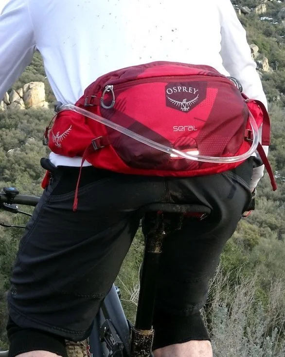 I like to carry things I need to have at hand in a small hip pack. Unlike a handlebar bag, or anything else bike-mounted, it goes with me when I get off the bike. And —unlike a backpack— it doesn’t annoyingly tug on my shoulders when I ride. In a riding position, a hip pack comfortably sits at your hips (not waist), and can hold a wallet, sunscreen and a snack. There are also hip bags that can carry a hydration bladder with a hose that conveniently clips to your clothes, and makes it easy to drink water throughout the ride. It’s a great option for a Brompton, or other bikes where mounting conventional water bottles is tricky.