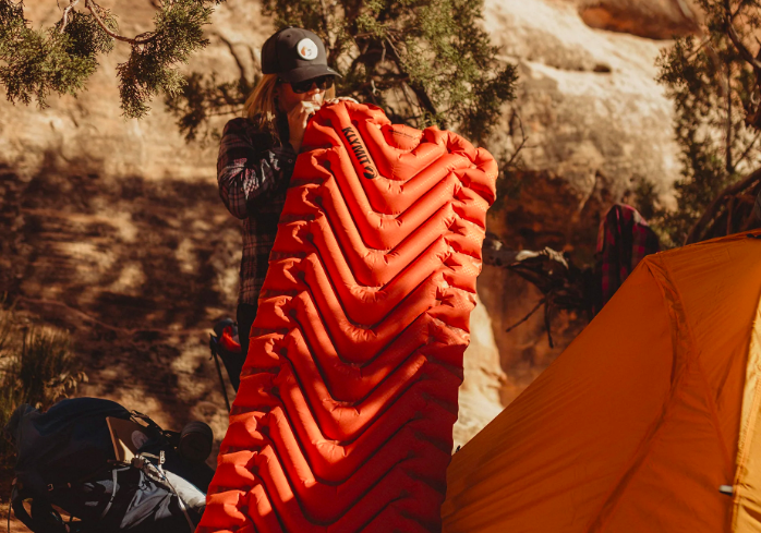 Enter The Static V sleeping pads from Klymitt. Their v-shaped center channels and articulated “side rails”distribute the air inside the pad it such a way that it keeps you comfortably centered on the pad throughout the night, even as you move and change position. Static V Pads are available in an assortment of widths and sizes, with or without insulation, and even in a double size ideal for couples and car camping.