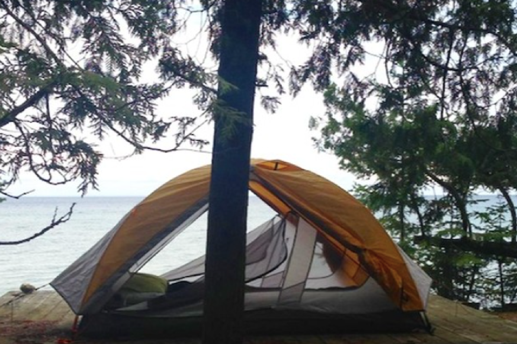 Ultralight tents can weigh 3lbs or less, but also cost an arm and a leg. For my overnight bike expeditions (ie.: carrying the tent on my bike rather than on my back), I have successfully used a moderately light ~6lbs 2-person, dual vestibule tent for about 8 years, and I am a big fan of this design. I don’t mind the little extra weight. When I am camping alone, it gives me generous room for all my gear. For camping with a tent-mate, the two doors/vestibules give each camper storage space, and a way to get in and out without climbing over each other, or the bedding.